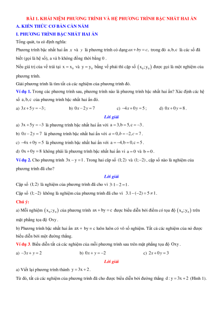BÀI 1. KHÁI NIỆM PHƯƠNG TRÌNH VÀ HỆ PHƯƠNG TRÌNH BẬC NHẤT HAI ẨN