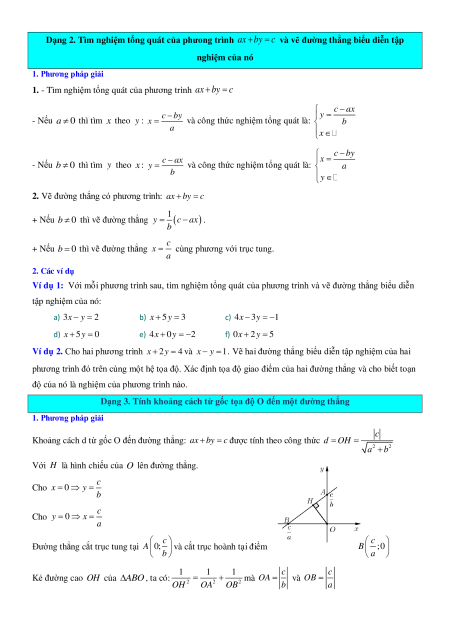 Dạng 2. Tìm nghiệm tổng quát của phưong trình ax by c và vẽ đường thẳng biểu diễn tập nghiệm của nó