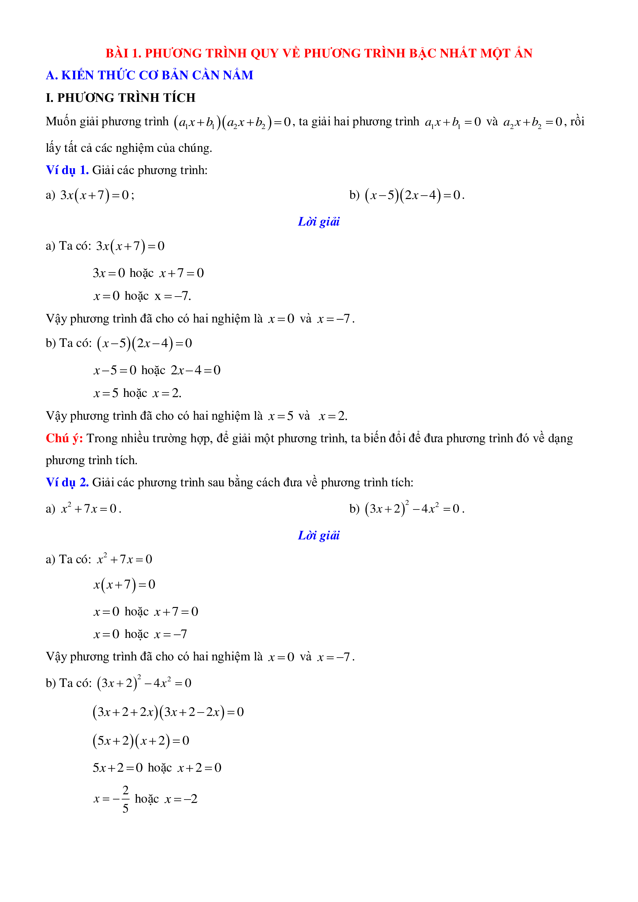 BÀI 1. PHƯƠNG TRÌNH QUY VỀ PHƯƠNG TRÌNH BẬC NHẤT MỘT ẨN
