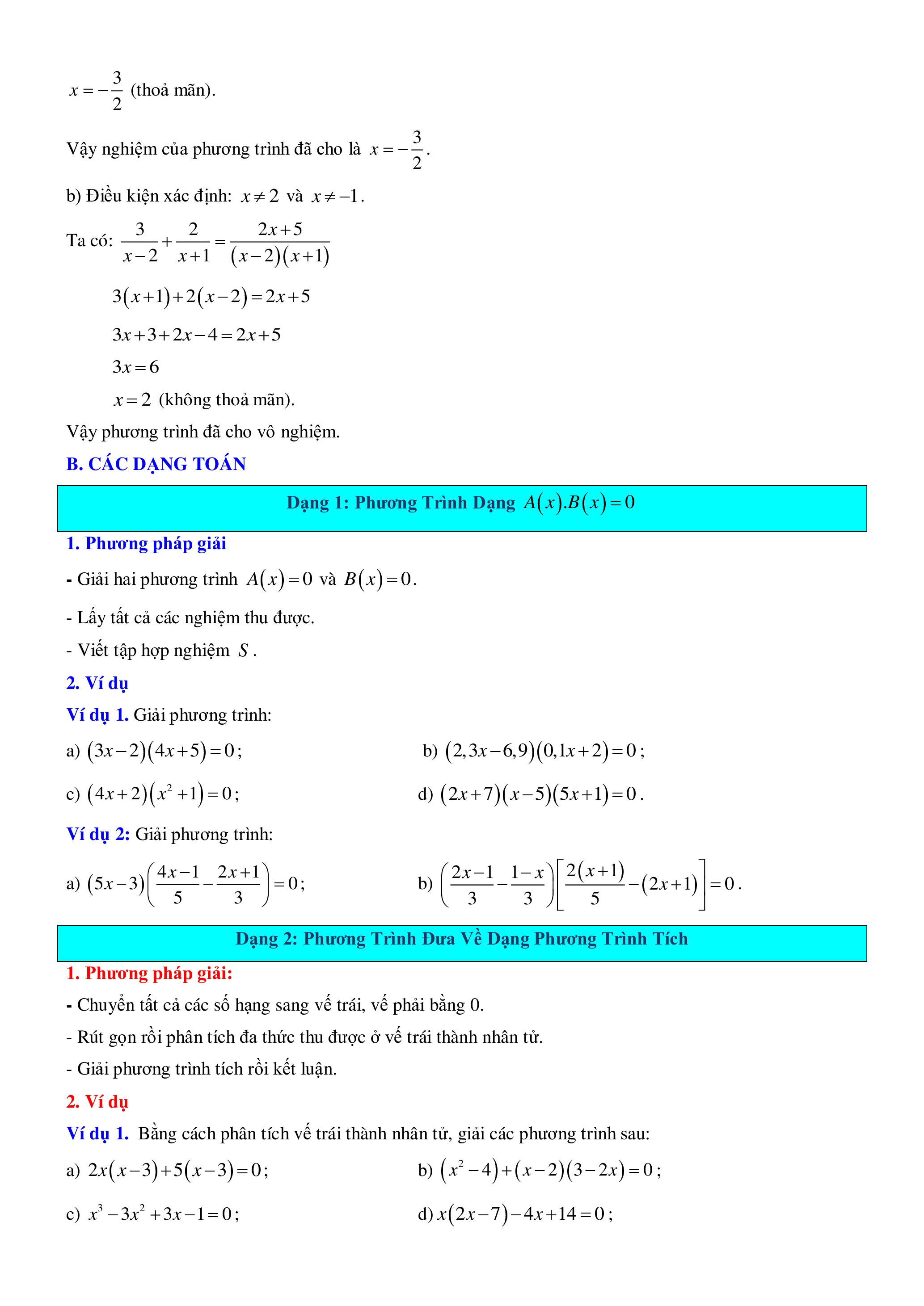 I. PHƯƠNG TRÌNH TÍCH