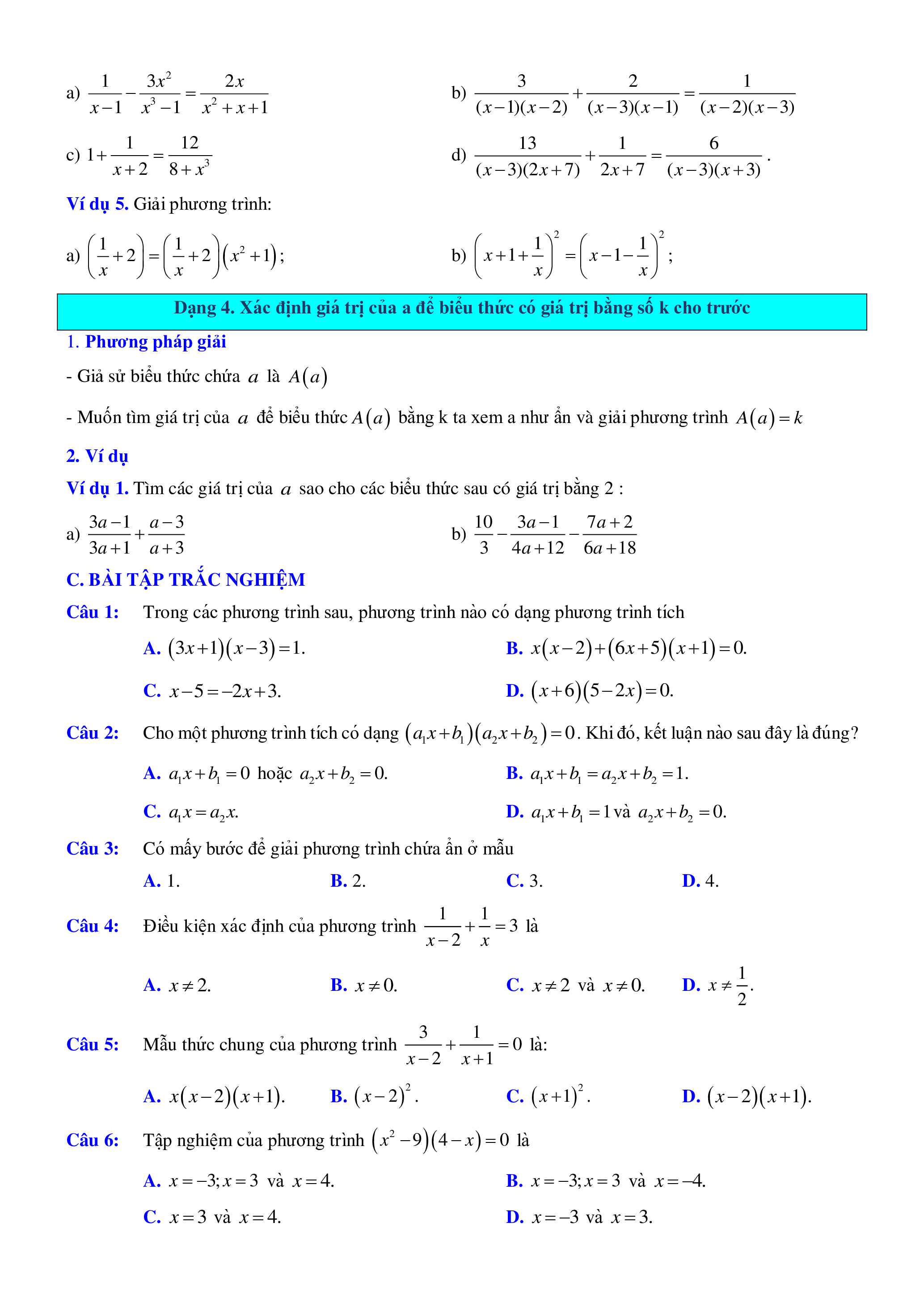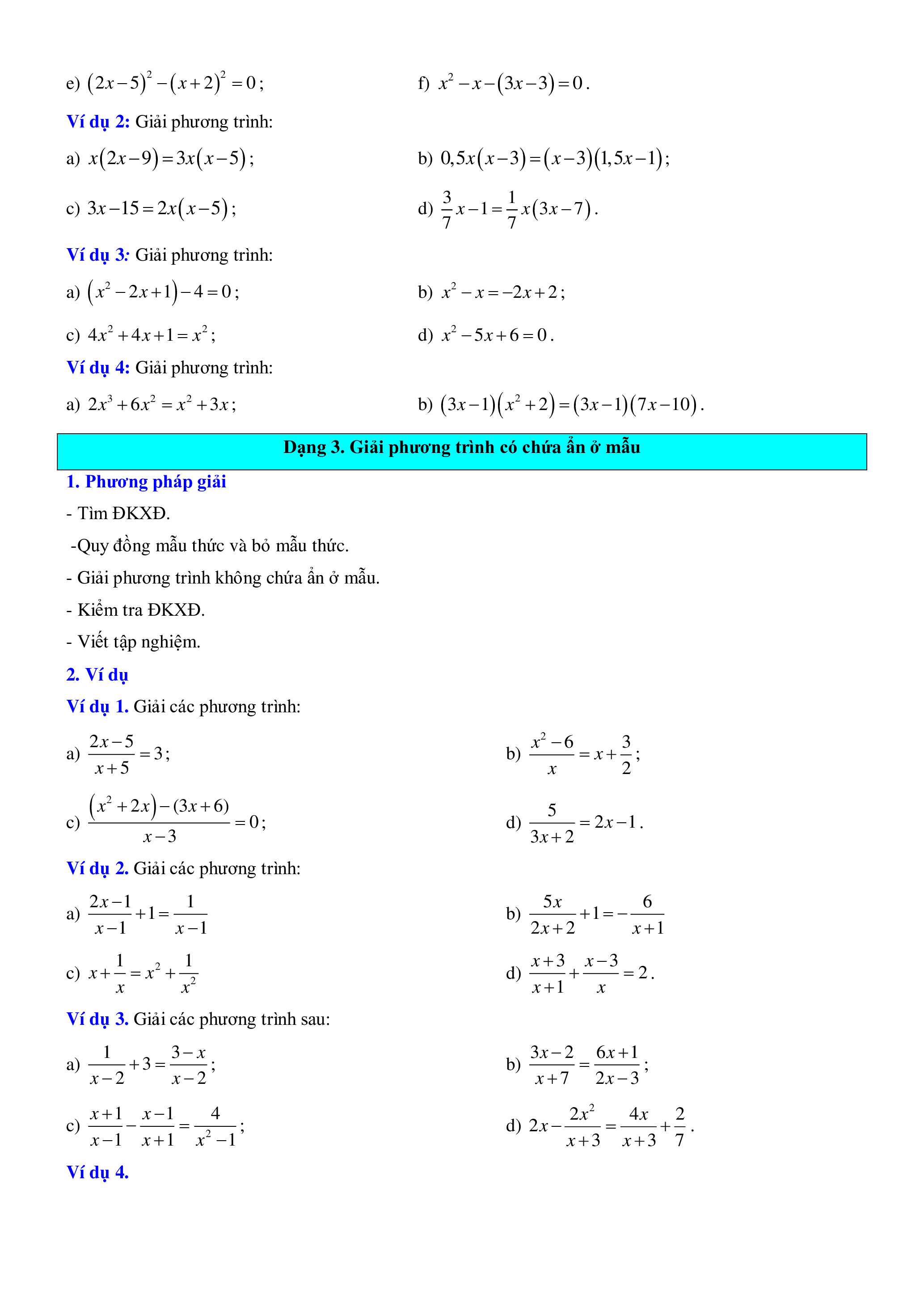 Dạng 3. Giải phương trình có chứa ẩn ở mẫu