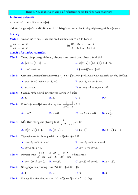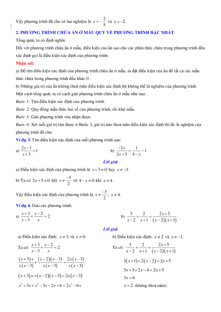 Dạng 3. Giải phương trình có chứa ẩn ở mẫu