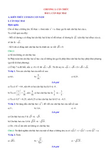A. KIẾN THỨC CƠ BẢN CẦN NẮM I. CĂN BẬC HAI Định nghĩa