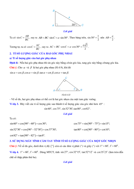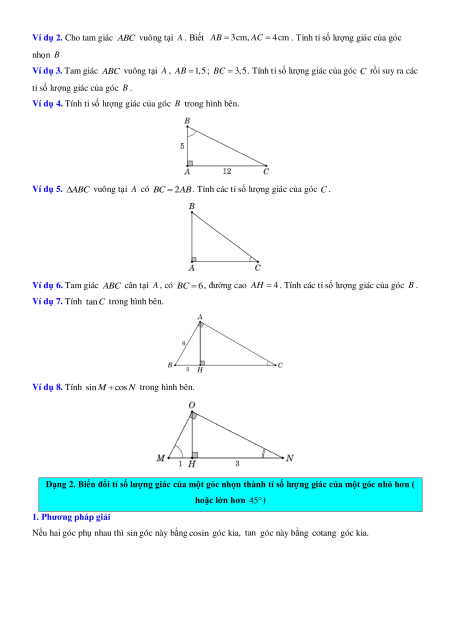 cạnh huyền) rồi vận dụng định nghĩa của các tỉ số lượng giác để nhận ra góc 2. Ví dụ minh họa