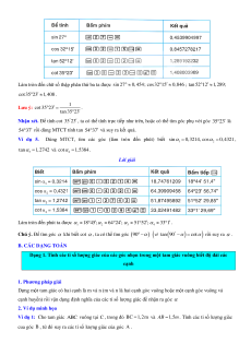 Chú ý. Để tìm góc khi biết cot , ta có thể tìm góc 90 vì tan 90 cot rồi suy ra . B. CÁC DẠNG TOÁN