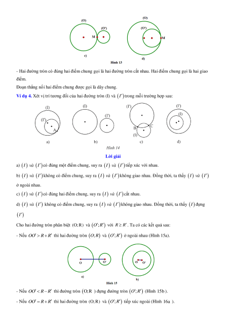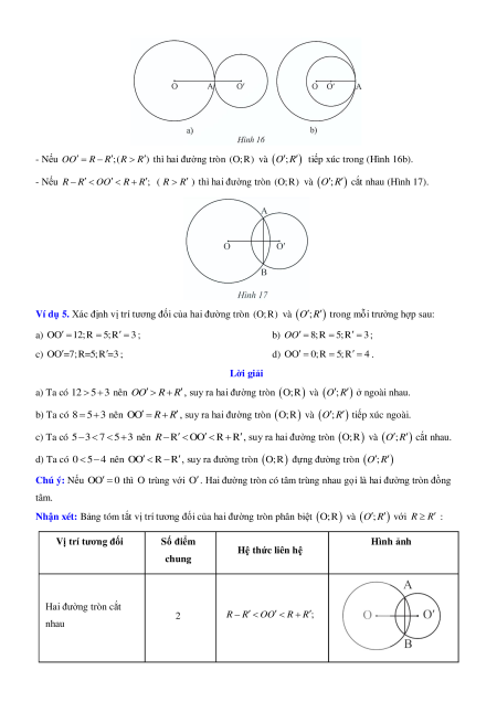Ví dụ 5. Xác định vị trí tương đối của hai đường tròn (O; R) và O ; R trong mỗi trường hợp sau: