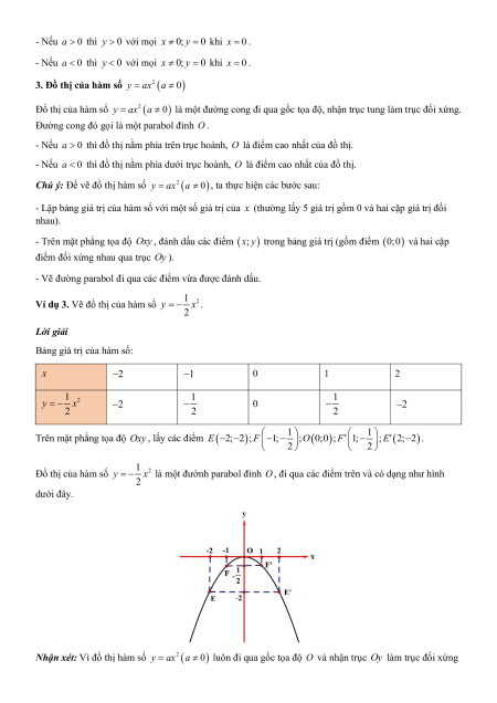 - Nếu a 0 thì y 0 với mọi x 0; y 0 khi x 0 .