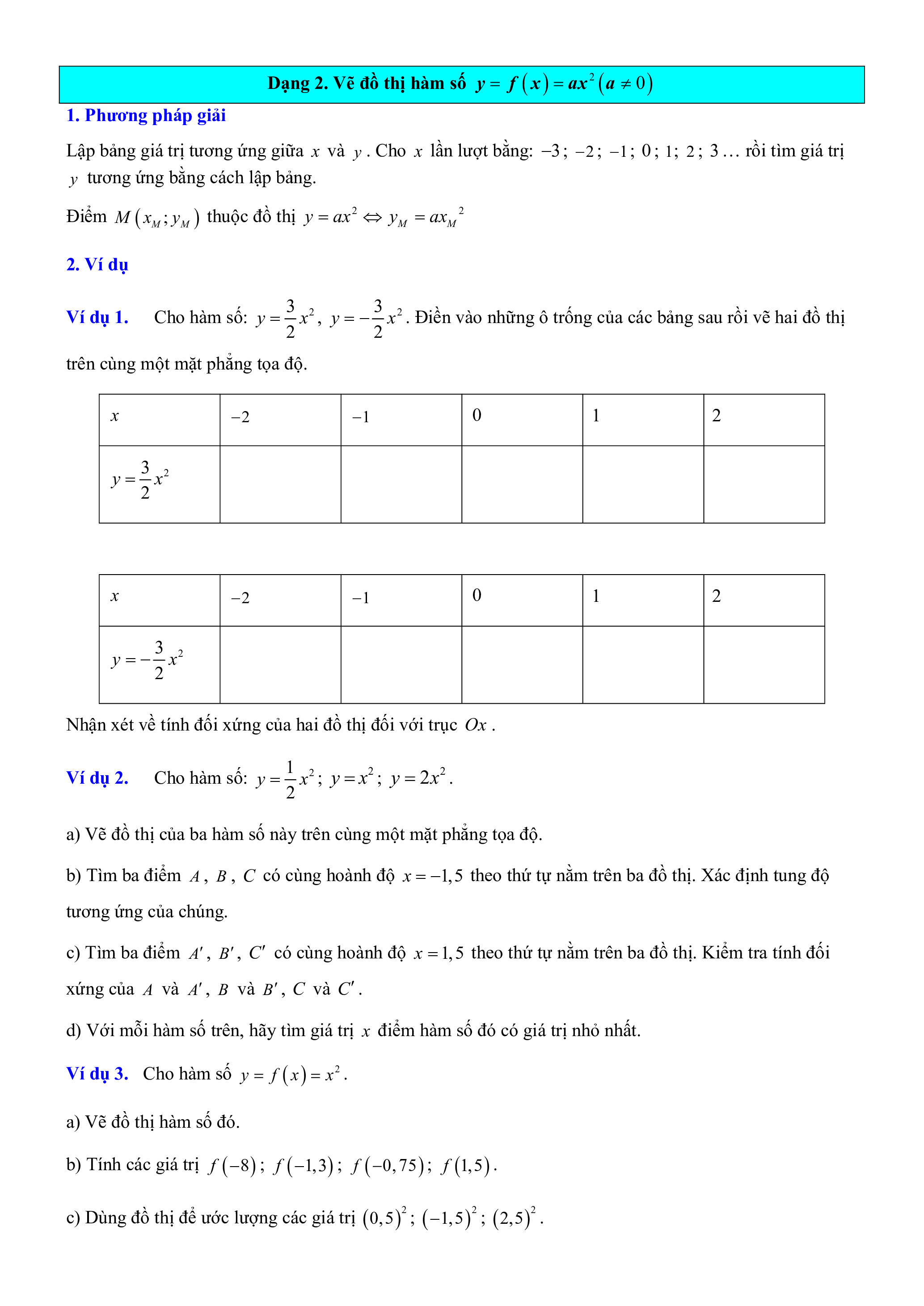 Ví dụ 2. Cho hàm số: 1 2 y x ; 2 y x ; 2 y 2x . 2