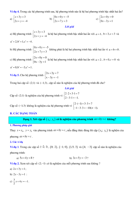 Cặp số (1;3) không là nghiệm của hệ phương trình vì 1 33 1 0( 1 ). B. CÁC DẠNG TOÁN