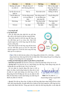 Chỉ dao động quanh Dao động quanh vị Chuyển động hỗn các phân tử vị trí cân bằng cố trí cân bằng luôn loạn định luôn thay đổi Hình dạng Xác định Phụ thuộc phần Phụ thuộc bình bình chứa nó chứa Thể tích Xác định Xác định Phụ thuộc bình chứa 3. Sự chuyển thể a. Sự chuyển thể