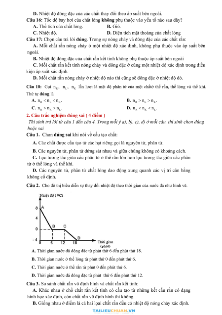 Câu 6. Các tính chất nào sau đây là tính chất của các phân tử chất lỏng?