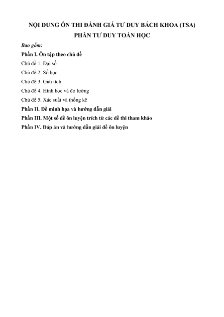NỘI DUNG ÔN THI ĐÁNH GIÁ TƯ DUY BÁCH KHOA (TSA)