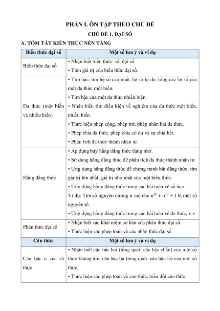 Phần I. Ôn tập theo chủ đề Chủ đề 1. Đại số Chủ đề 2. Số học Chủ đề 3. Giải tích