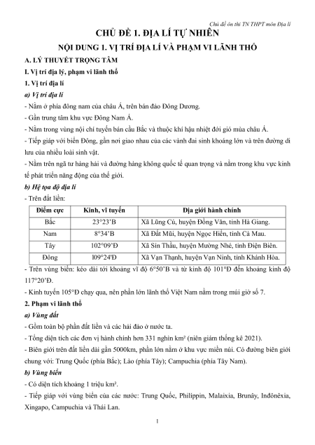 CHỦ ĐỀ 1. ĐỊA LÍ TỰ NHIÊN