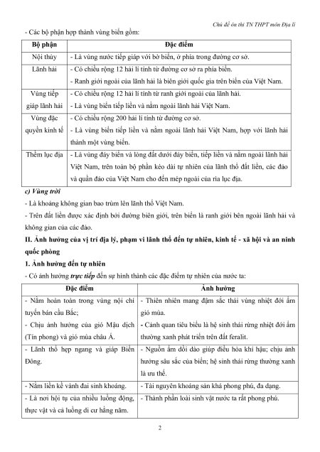 II. Ảnh hưởng của vị trí địa lý, phạm vi lãnh thổ đến tự nhiên, kinh tế - xã hội và an ninh quốc phòng