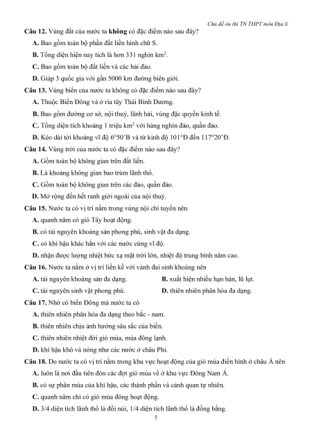 Chủ đề ôn thi TN THPT môn Địa lí