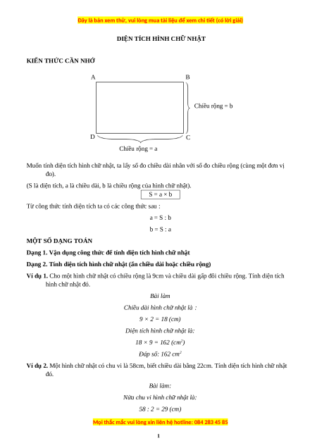 DIỆN TÍCH HÌNH CHỮ NHẬT