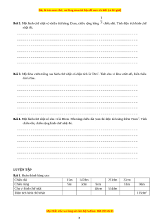 Dạng 2. Cho biết diện tích hình chữ nhật, tính chiều dài (chiều rộng), chu vi hình chữ nhật