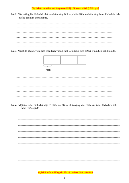Bài 1. Tính diện tích hình chữ nhật biết: