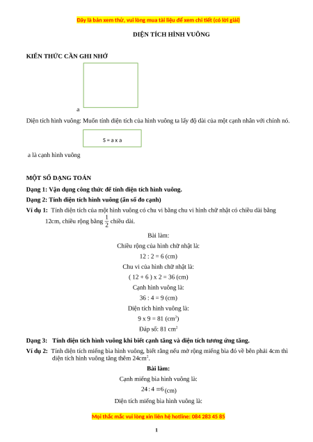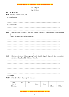 Dạng 1: Vận dụng công thức để tính diện tích hình vuông.