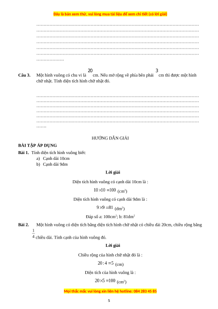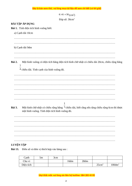 Bài 1. Tính diện tích hình vuông biết: a) Cạnh dài 10cm
