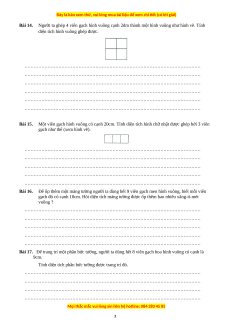 Bài 15. Một viên gạch hình vuông có cạnh 20cm. Tính diện tích hình chữ nhật được ghép bởi 3 viên