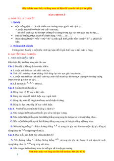ó các đặc điểm sau thư ng đ ờ ư c ợ g i ọ là m t ộ đ nh l ị ý: - Là một phát bi u v ể m ề t ộ tính chất toán h c ọ ; - Tính chất toán h c ọ đó đã đư c ợ ch ng ứ tỏ là đúng không d a ự vào tr c ự giác hay đo đ c ạ , … Đ nh l ị ý thư ng đ ờ ư c ợ phát biểu dư i ớ dạng “ N u … t ế hì …”. Phần nằm gi a ữ t “ ừ N u” ế và t “ ừ thì” là ph n gi ầ t ả hi t ế , ph n n ầ m ằ sau t “ ừ thì” là ph n k ầ t ế luận. 2. Ch n ứ g minh đ n ị h lý Ch ng m ứ inh đ nh l ị ý là m t ộ ti n t ế rình l p l ậ u n đ ậ t ể gi ừ t ả hiết suy ra k t ế lu n l ậ à đúng. B. BÀI T P Ậ TR C N Ắ GHI M Ệ I – M C Đ Ứ N Ộ HẬN BI T Ế Hãy ch n