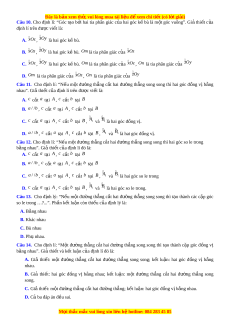 1 và 1 là hai góc so le trong. Câu 13. Cho đ nh ị lý: “N u ế m t ộ đư ng ờ th ng ẳ c t ắ hai đư ng ờ th ng ẳ song song thì t o ạ thành các c p ặ góc