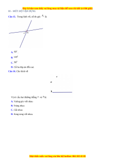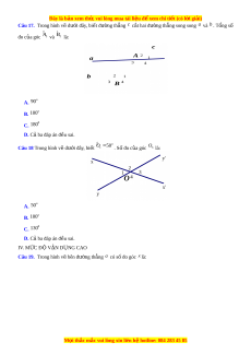 C. Nếu Oa và Ob là các tia phân giác c a ủ hai góc k bù t ề hì chúng là hai tia đ i ố nhau. D. Cả ba đáp án , A B, C . II – M C Đ Ứ Ộ THÔNG HI U Ể