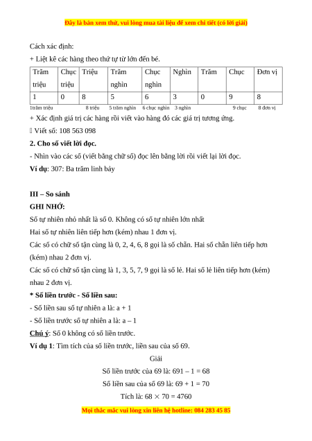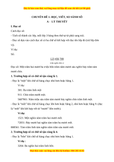 CHUYÊN ĐỀ 1: ĐỌC, VIẾT, SO SÁNH SỐ