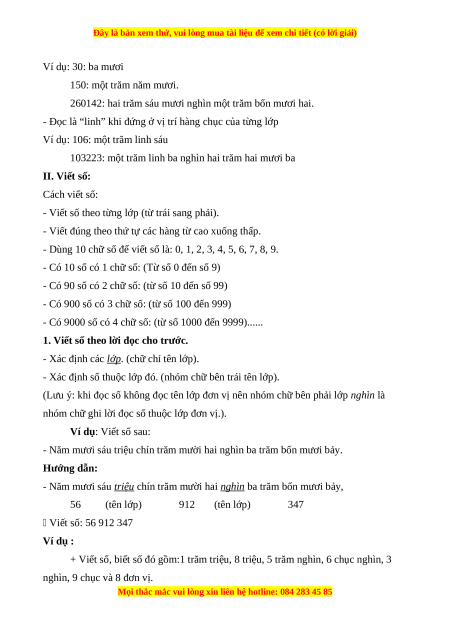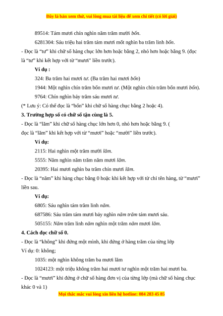 (Lưu ý: khi đọc số không đọc tên lớp đơn vị nên nhóm chữ bên phải lớp nghìn là