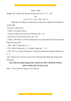 BẰNG TÍNH CHỮ SỐ TẬN CÙNG