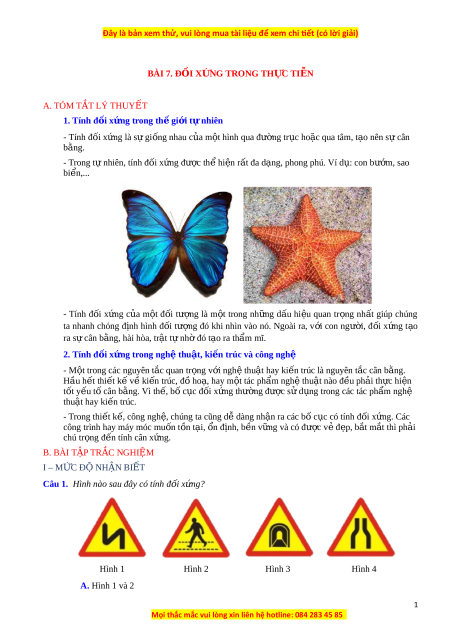 Câu 1. Hình nào sau đây có tính đ i ố x ng? ứ Hình 1 Hình 2 Hình 3 Hình 4 A. Hình 1 và 2 1
