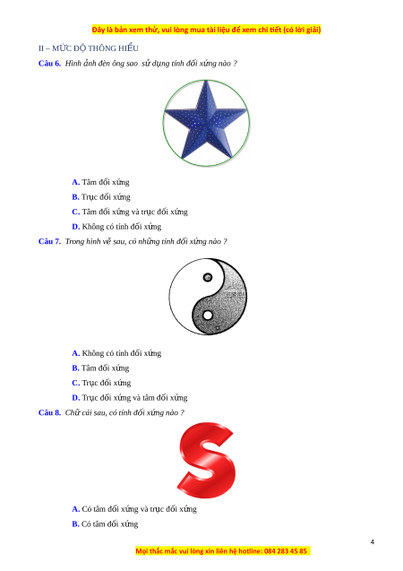 Câu 6. Hình nh đè ả n ông sao s d ử ng t ụ ính đ i ố x ng nào ứ ? A. Tâm đ i ố x ng ứ B. Tr c ụ đ i ố x ng ứ C. Tâm đ i ố x ng ứ và tr c ụ đ i ố x ng ứ