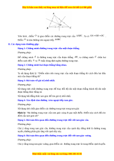 ủ ABC . Ta có OA O B O C . Đi m ể O là tâm đư ng ờ tròn ngoại ti p ế ABC II. Các d n ạ g toán thư n ờ g g p ặ : Dạng 1: Ch n ứ g minh đư n ờ g trung tr c ự c a ủ m t đ ộ o n ạ th n ẳ g. Phư ng ơ pháp: Để ch ng ứ minh d là đư ng ờ trung tr c ự c a ủ đo n ạ th ng ẳ AB , ta ch ng ứ minh d ch a ứ hai