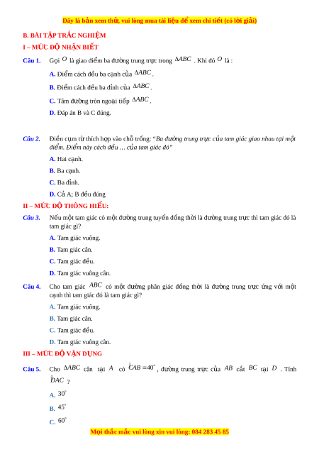 Đây là bản xem th , vu ử i lòng mua tài li u ệ đ xe ể m chi ti t ế (có l i ờ gi i ả ) B. BÀI T P Ậ TR C Ắ NGHI M Ệ I – MỨC ĐỘ NH N Ậ BI T Ế Câu 1. G i