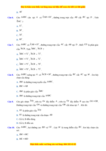 Đây là bản xem th , vu ử i lòng mua tài li u ệ đ xe ể m chi ti t ế (có l i ờ gi i ả ) D. 40 Câu 6. Cho ABC cân t i