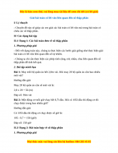 Giải bài toán có lời văn liên quan đến số thập phân I/ Lý thuyết