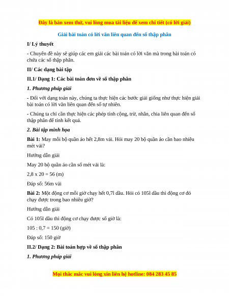 - Chuyên đề này sẽ giúp các em giải các bài toán có lời văn mà trong bài toán có chứa các số thập phân.