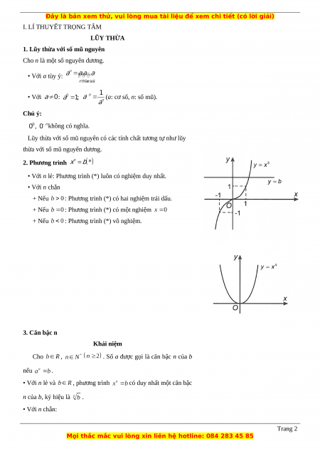 I. LÍ THUYẾT TRỌNG TÂM LŨY THỪA