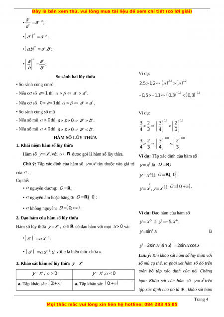 + Biết khái niệm và tính chất của hàm số lũy thừa.