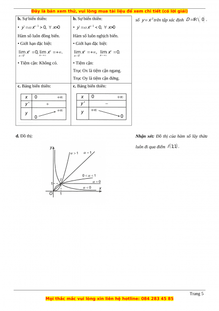 Lưu ý: Khi khảo sát hàm số lũy thừa với