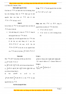 + Nắm vững các phương pháp tính nguyên hàm.