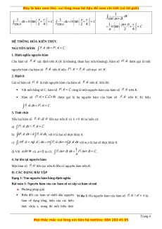 HỆ THỐNG HÓA KIẾN THỨC NGUYÊN HÀM: