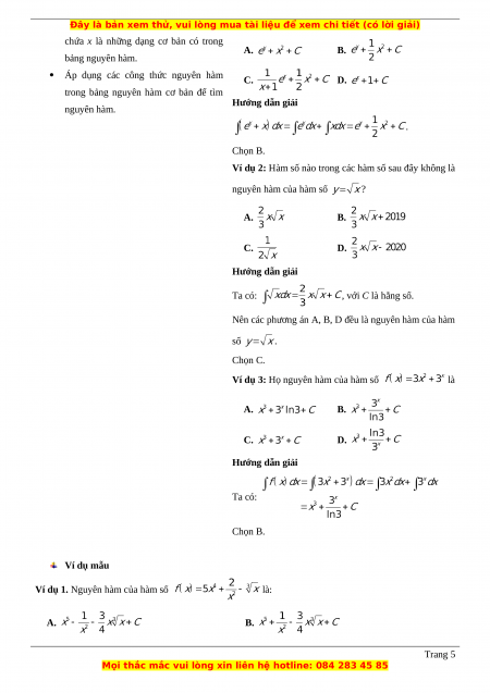 Ví dụ 1. Nguyên hàm của hàm số là: