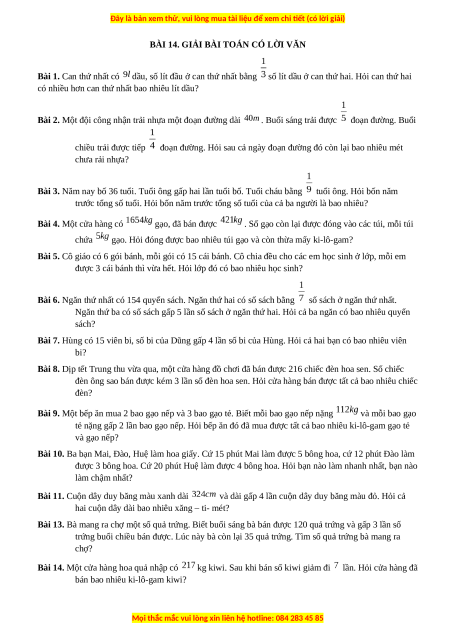 Bài 14. Một cửa hàng hoa quả nhập có kg kiwi. Sau khi bán số kiwi giảm đi lần. Hỏi cửa hàng đã