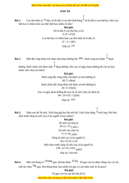 Bài 1. Can thứ nhất có dầu, số lít đầu ở can thứ nhất bằng số lít dầu ở can thứ hai. Hỏi can