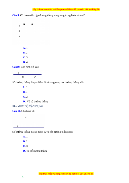 ờ thẳng đi qua điểm N và song song v i ớ đư ng t ờ h ng a ẳ là: A. 0 B. 1 C. 2 D. Vô số đư ng t ờ hẳng III – M C Đ Ứ Ộ V N Ậ D N Ụ G Câu 11. Cho hình v : ẽ S đ ố ư ng