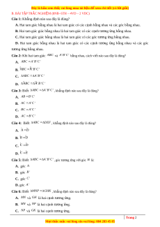 Câu 1: Khẳng định nào sau đây là đúng? A. Hai tam giác b ng ằ