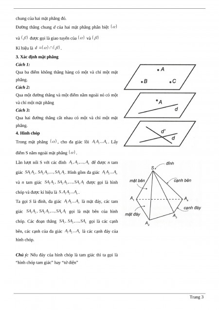 Qua hai đường thẳng cắt nhau có một và chỉ một mặt phẳng. 4. Hình chóp Trong mặt phẳng , cho đa giác lồi . Lấy
